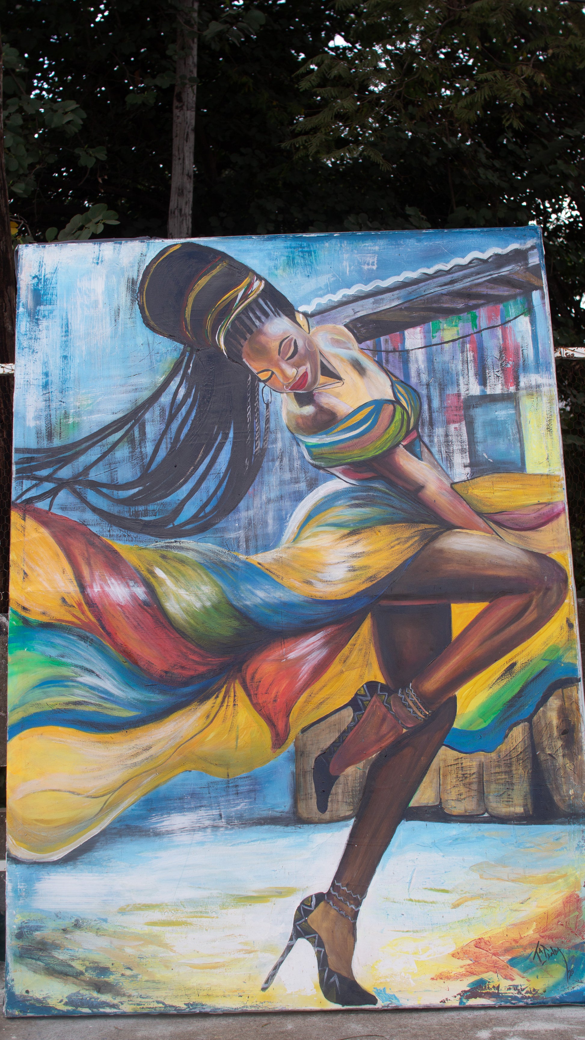 Bursting with motion and rhythm, Dance of Joy captures the spirit of African celebration in full color. The painting features a joyful woman mid-twirl, her dress a cascade of flowing rainbow hues that mirror the energy of her movement. Her powerful posture, confident expression, and stylish high heels tell a story of pride, beauty, and cultural vibrancy.