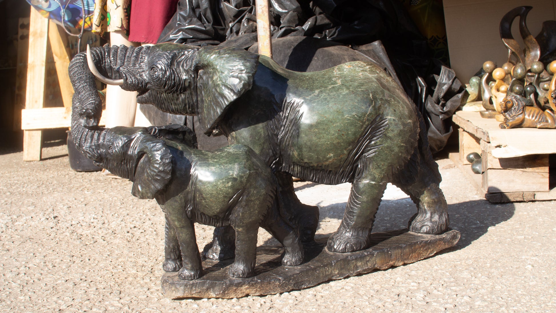 A beautiful depiction of connection and family, this stone sculpture shows a mother elephant gently touching trunks with her calf. Symbolizing protection, nurturing, and legacy, this piece is perfect for wildlife lovers or anyone drawn to the strength of maternal love