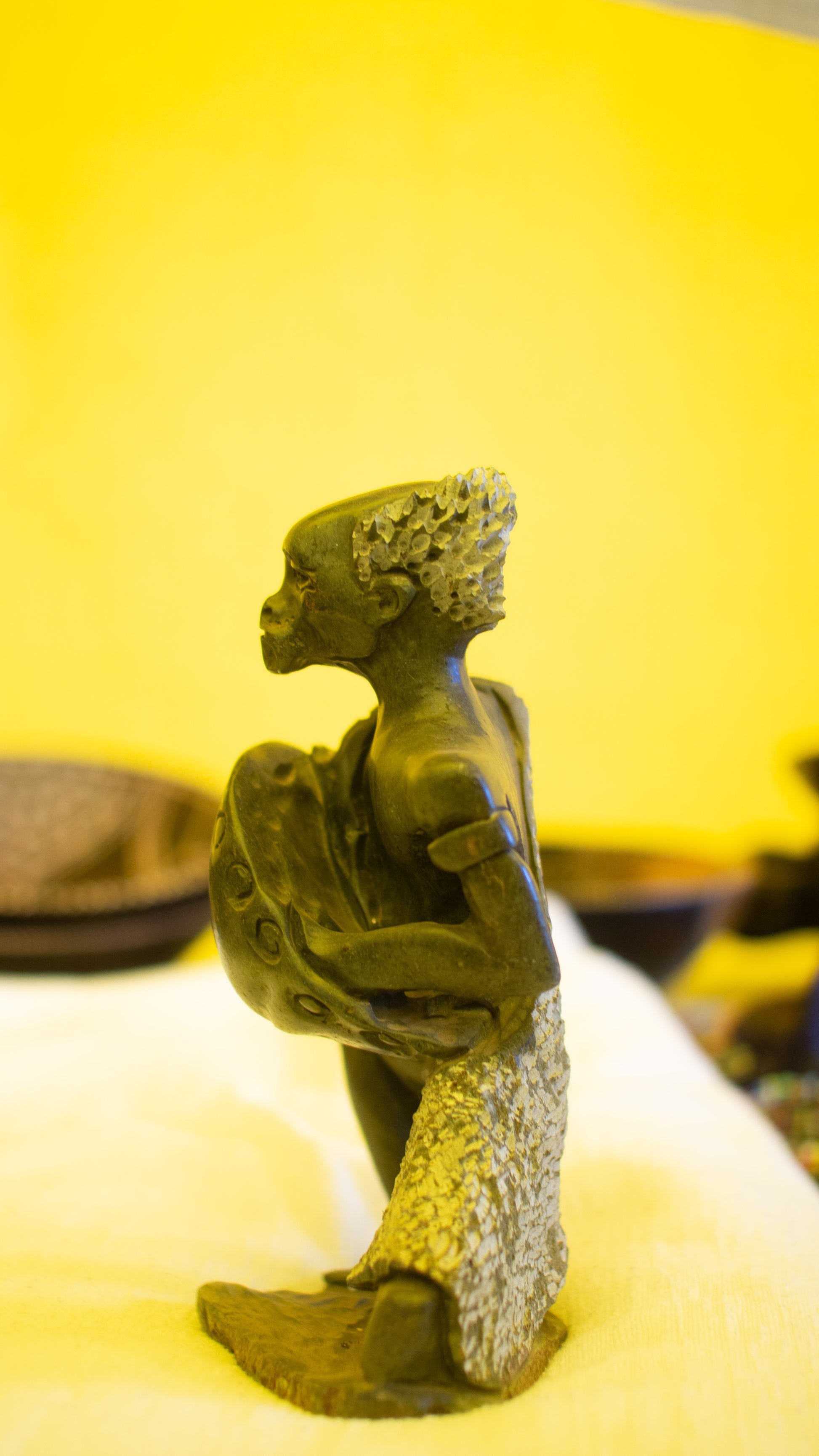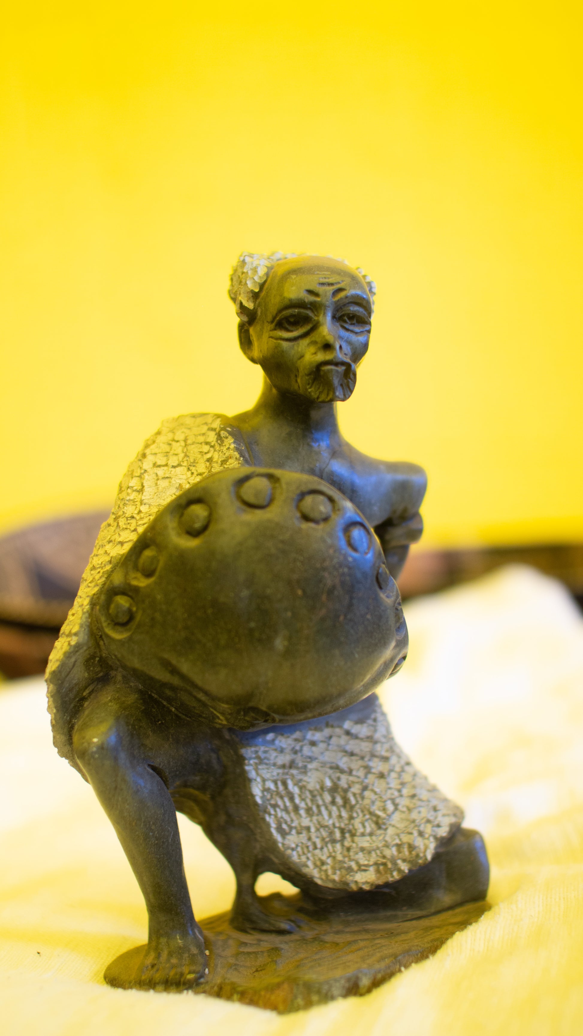 This soulful sculpture captures an elder playing a Zimbabwean instrument, the mbira. A tribute to African ancient traditions and storytelling, this piece radiates culture and a deep spiritual connection to tradition and ceremony.
